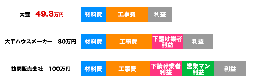 そのため、上記のグラフでお分かりの通り、営業経費や下請け業者の工事代金の中抜きが発生しません。