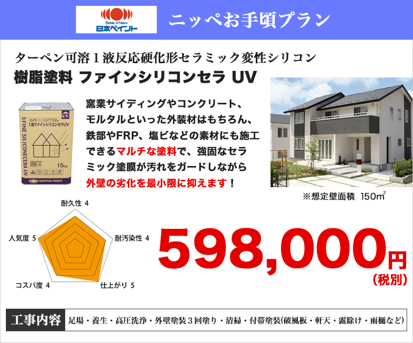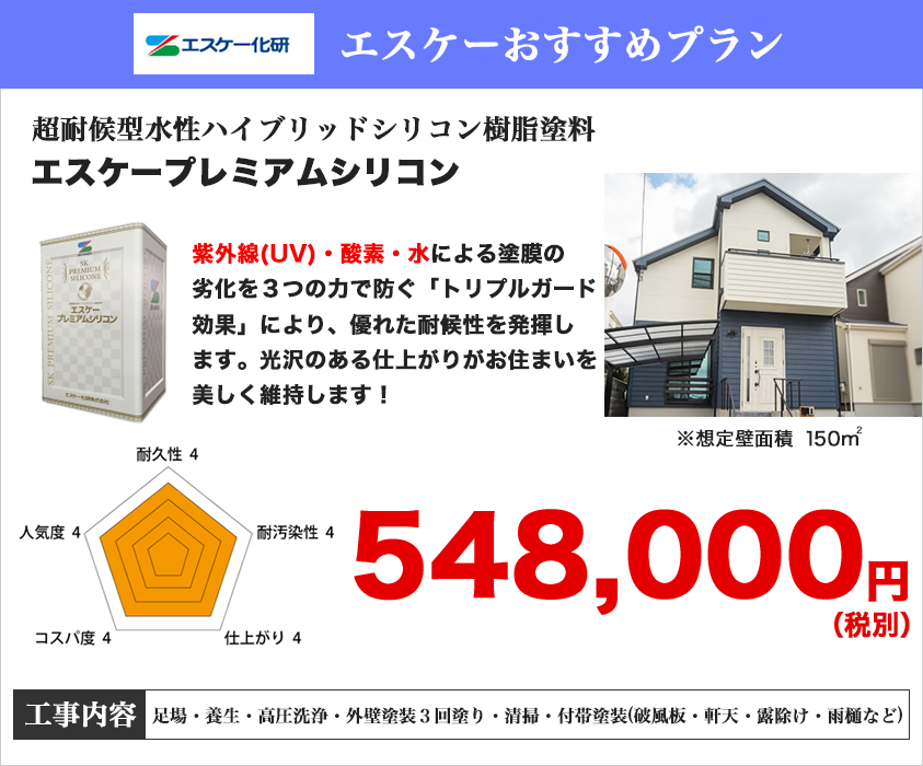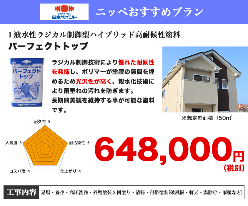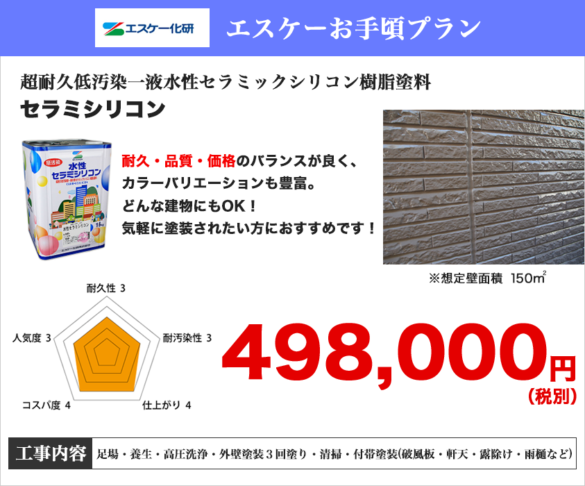 「おすすめ塗装プラン」のページにて、プラン毎の金額を掲載させていただいております。